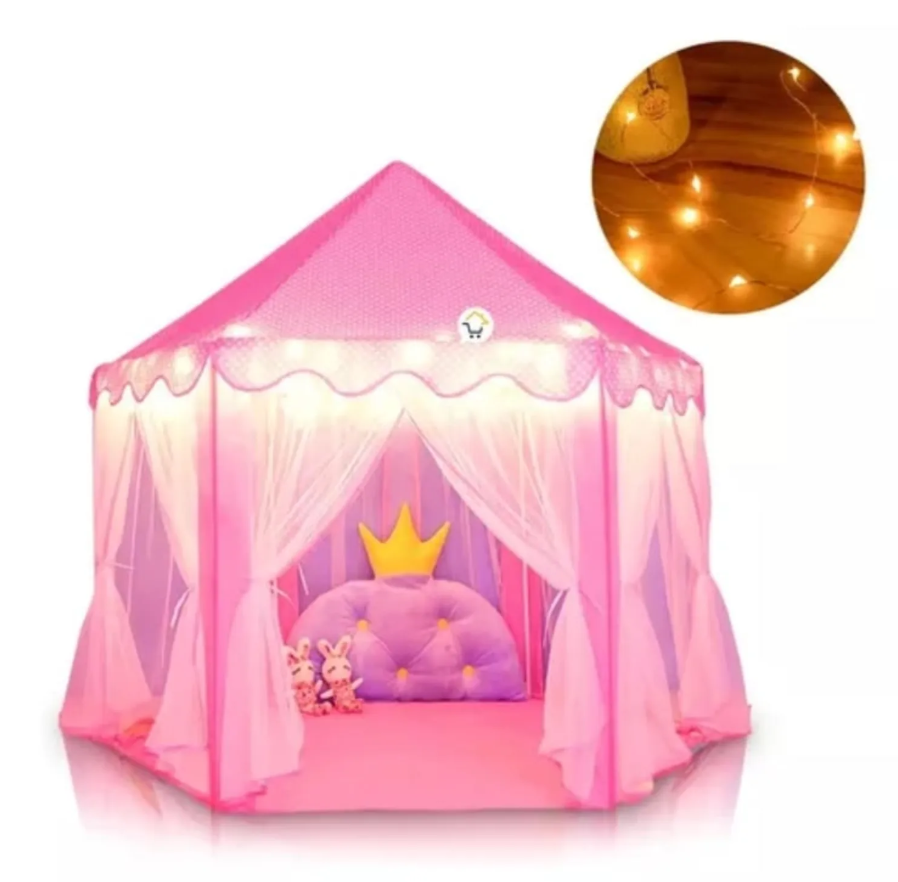 Con forma de torre y detalles delicados, esta carpa hace realidad el sueño de toda pequeña princesa. Es ideal para cumpleaños, navidad o como un regalo inolvidable.