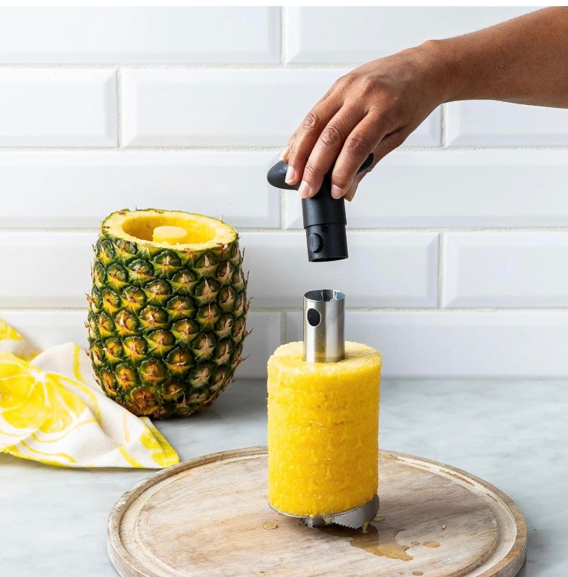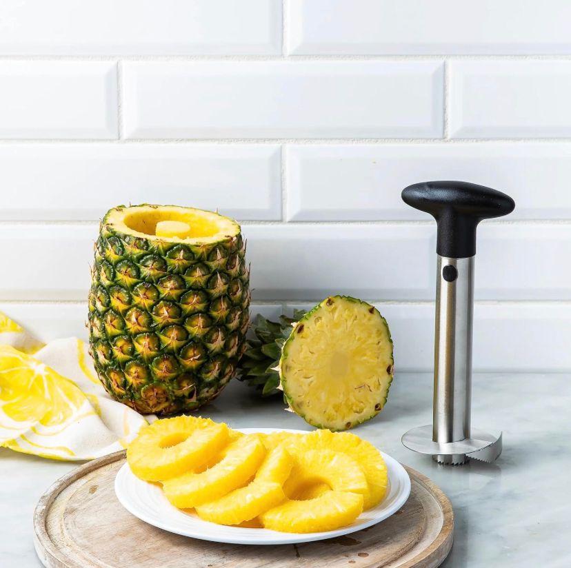 ? Descorazona y rebana sin ensuciar: Mantiene la piña fresca y conserva todo su jugo natural.