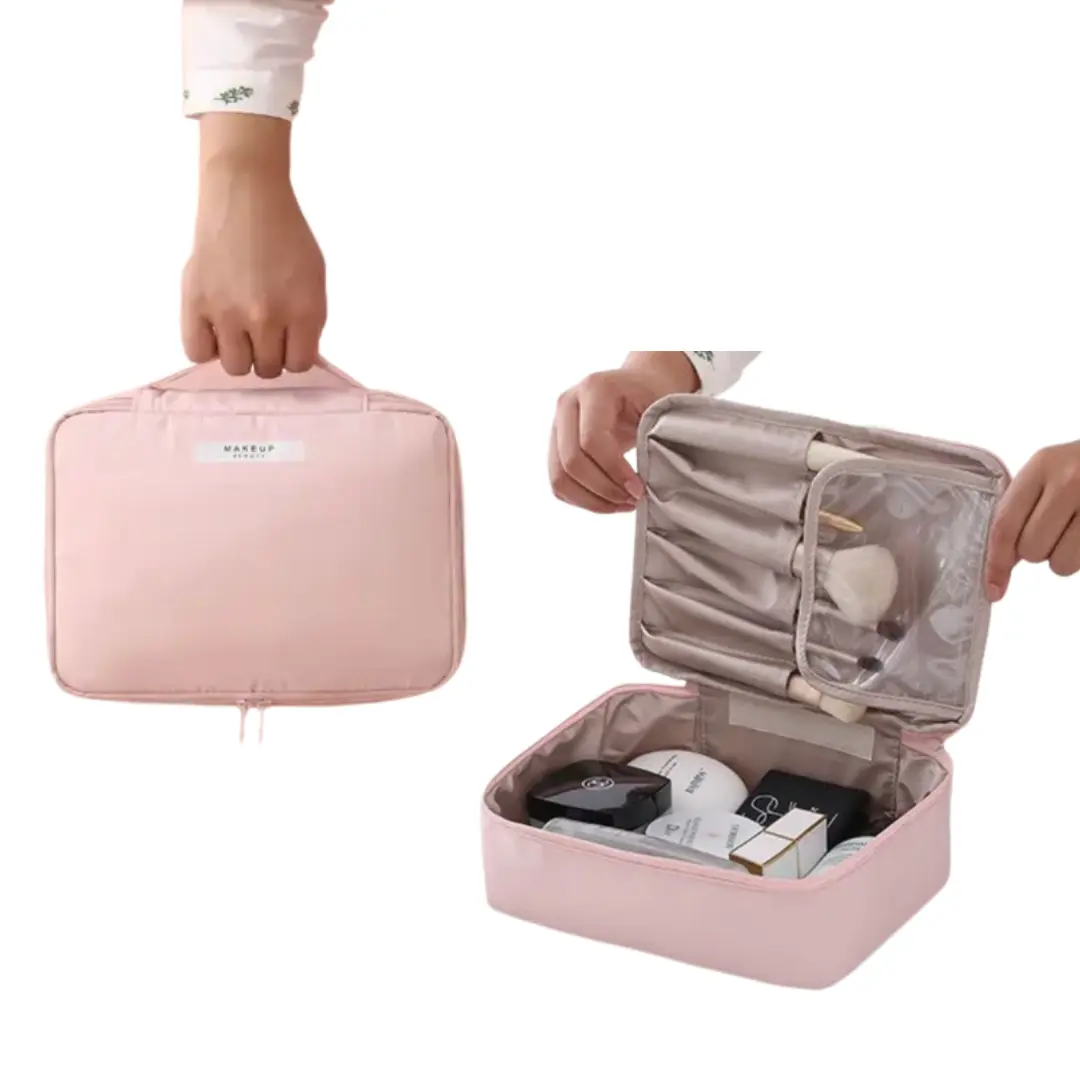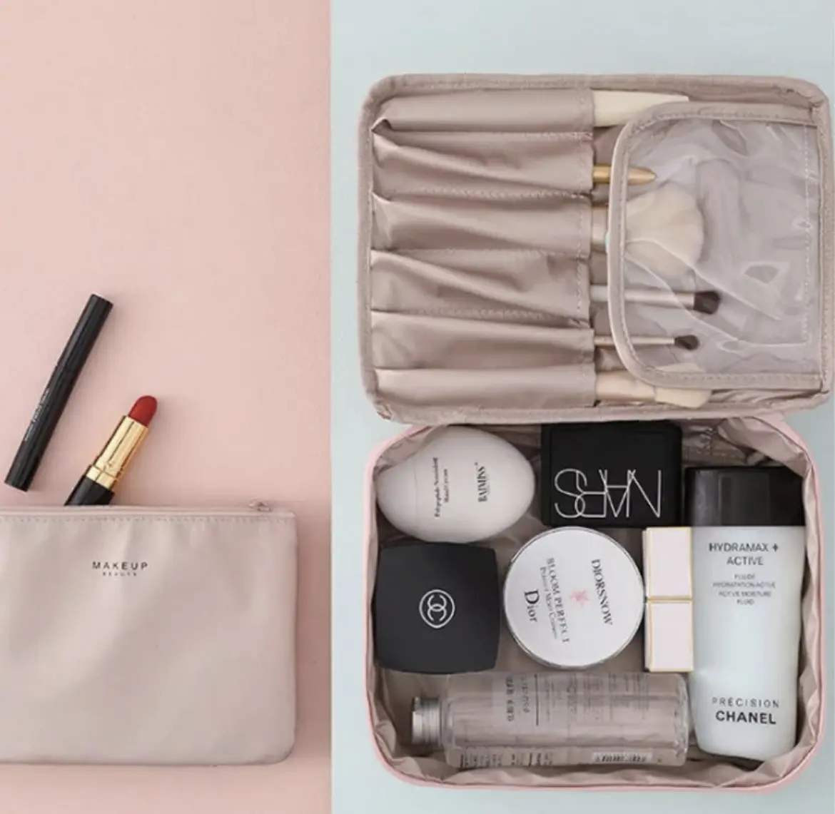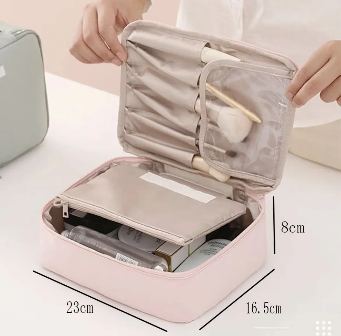 Con compartimentos organizadores que facilitan mantener en orden tus brochas, maquillaje, cremas y accesorios.