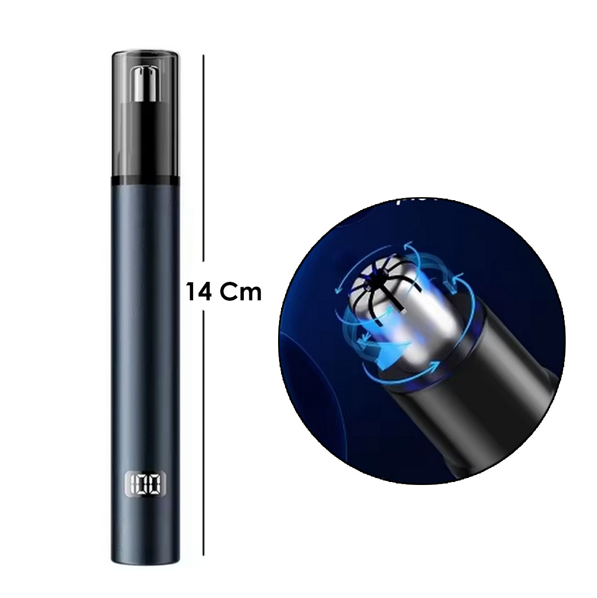 Depiladora De Nariz y oído Práctico para retirar el vello que se genera en el interior de la nariz y borde del oído. Totalmente seguro y sin dolor. Muy simple de utilizar. El vello entra por las ranuras en su interior y una doble cuchilla rotativa lo corta sin ningún tipo de molestia o dolor.