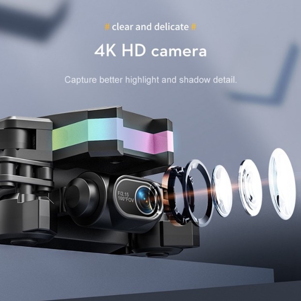 Incluye protectores de hélice de material ABS de alta resistencia, que protegen el drone ante caídas o impactos. Gracias a sus hélices plegables y cuerpo compacto, es fácil de guardar y llevar a cualquier lugar.