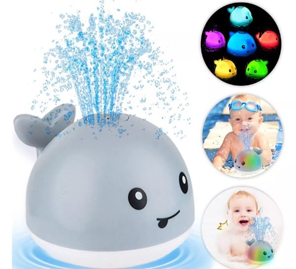 Juguetes de baño bebés, aspersor eléctrico automático con forma de ballena, juguetes de baño grises bebés