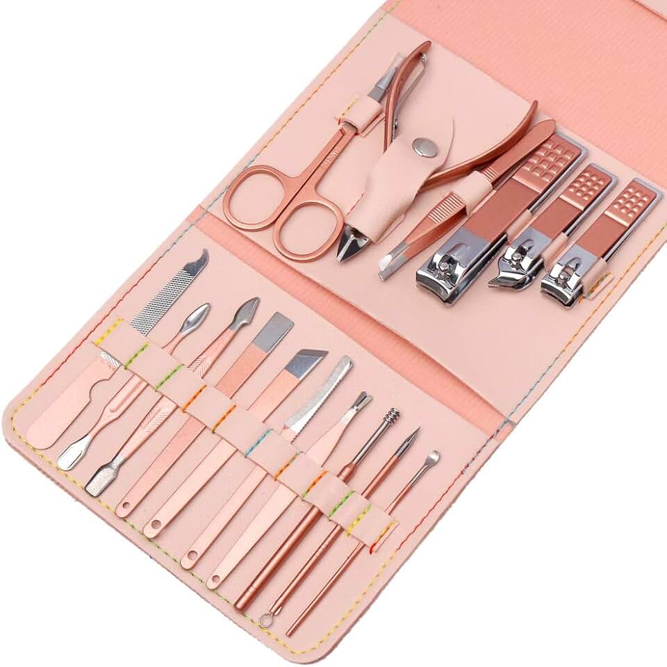 ✅ Set completo: Incluye cortaúñas, tijera, lima, pinzas, empujadores, removedor de cutículas y más.