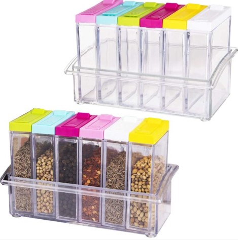 6 Contenedores con Tapa Dosificadora: Acceso rápido, cómodo y limpio para tus condimentos favoritos.