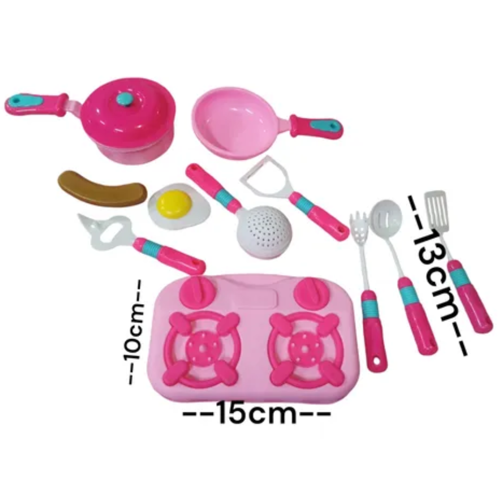 Incluye estufa, ollitas, sartén, platos, cubiertos y más, todo fabricado con materiales seguros, sin bordes filosos y perfectos para manos pequeñas.