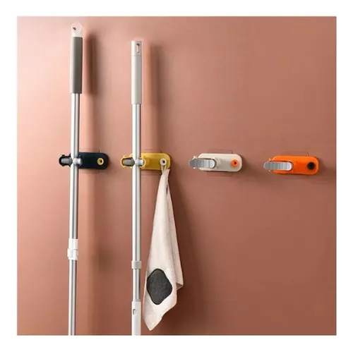 Mantén tu hogar ordenado con este soporte adhesivo resistente al agua, ideal para colgar escobas, traperos, cepillos, paraguas y otros artículos con mango. Perfecto para el baño, la cocina, el lavadero o cualquier espacio donde necesites organización práctica.