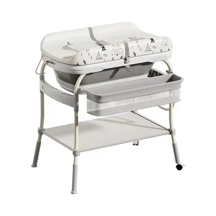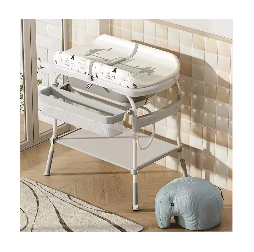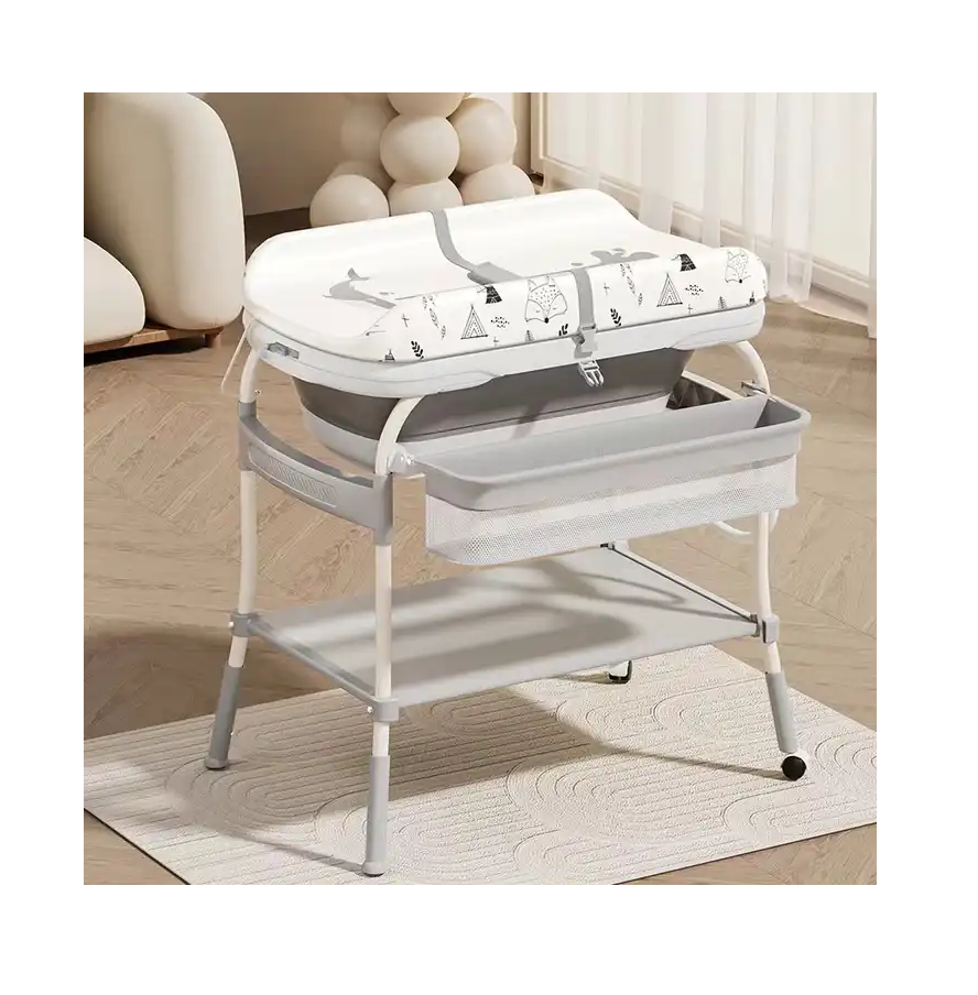 • Cambiador grande y amplio ABULLONADO que se coloca sobre la tina para que allí puedas cambiar de forma segura a tu bebe con arnés de seguridad.