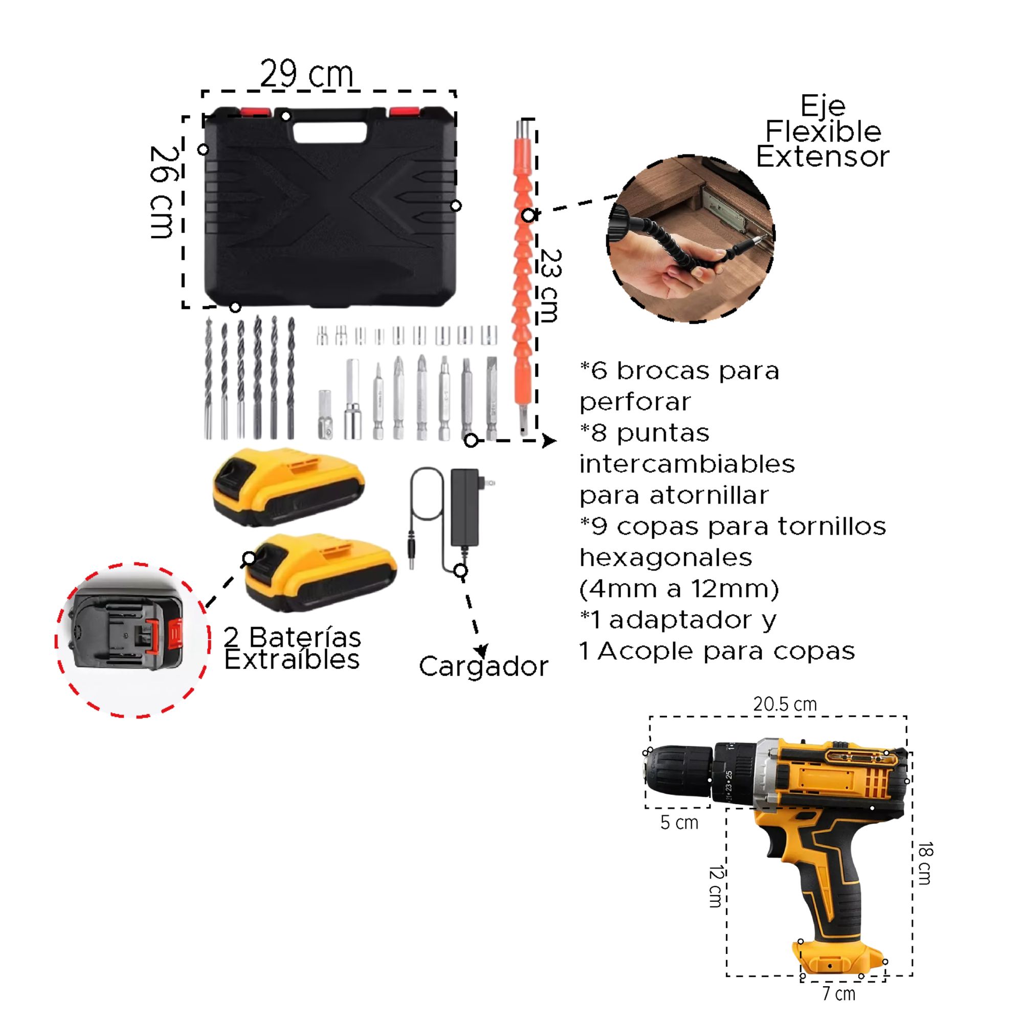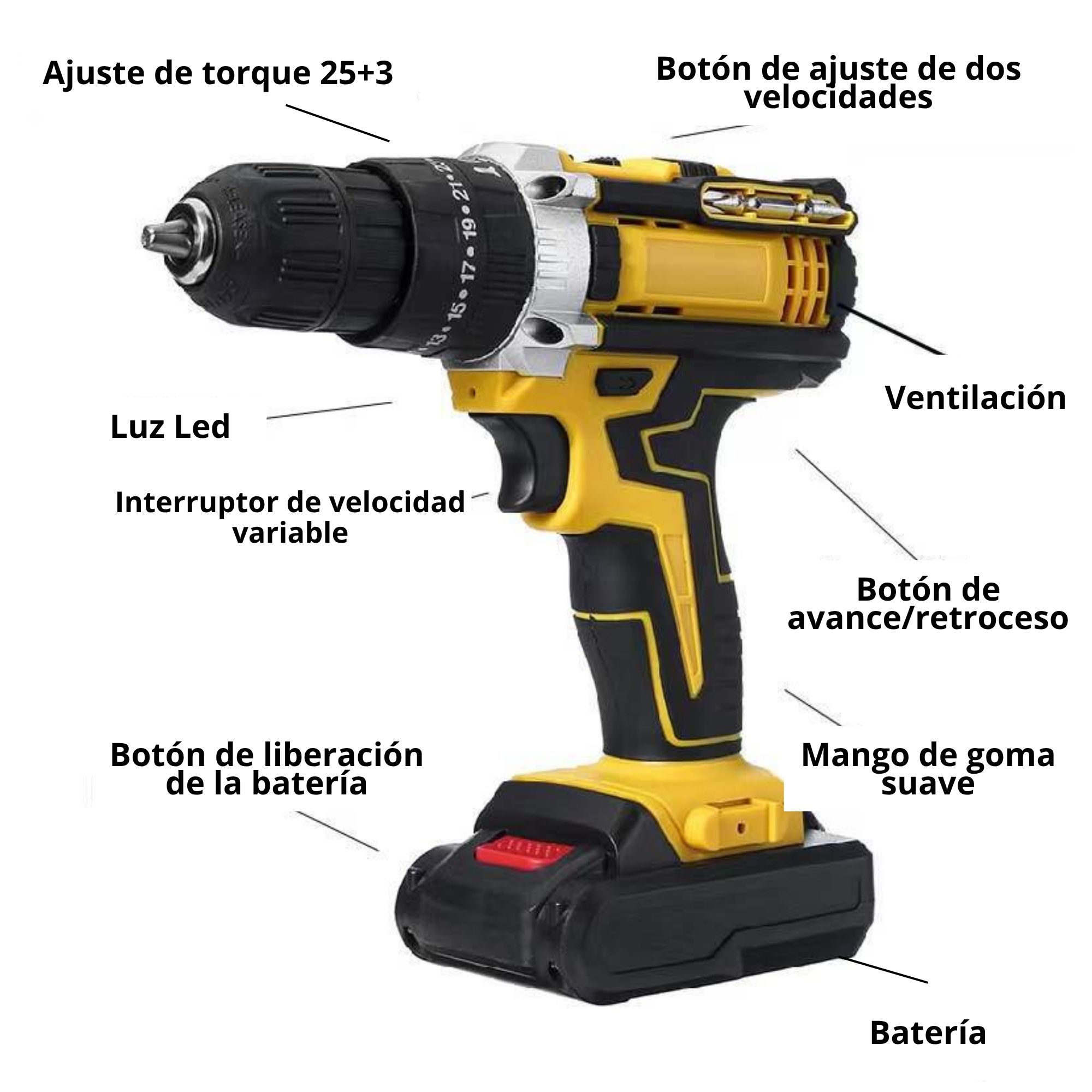 ✅ Taladro inalámbrico ergonómico con diseño cómodo, ligero y resistente.